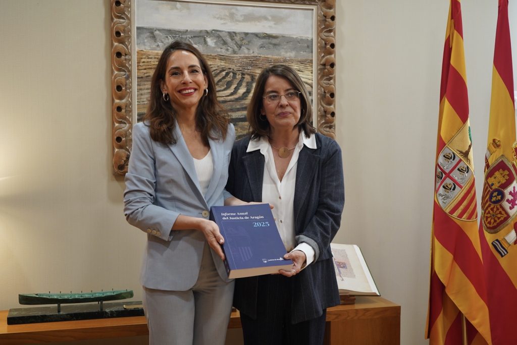 La justicia de Aragón, Concepción Gimeno, ha entregado esta mañana a la presidenta de las Cortes, María Navarro, el Informe Anual de 2025 que refleja la actividad de la institución durante el pasado año.